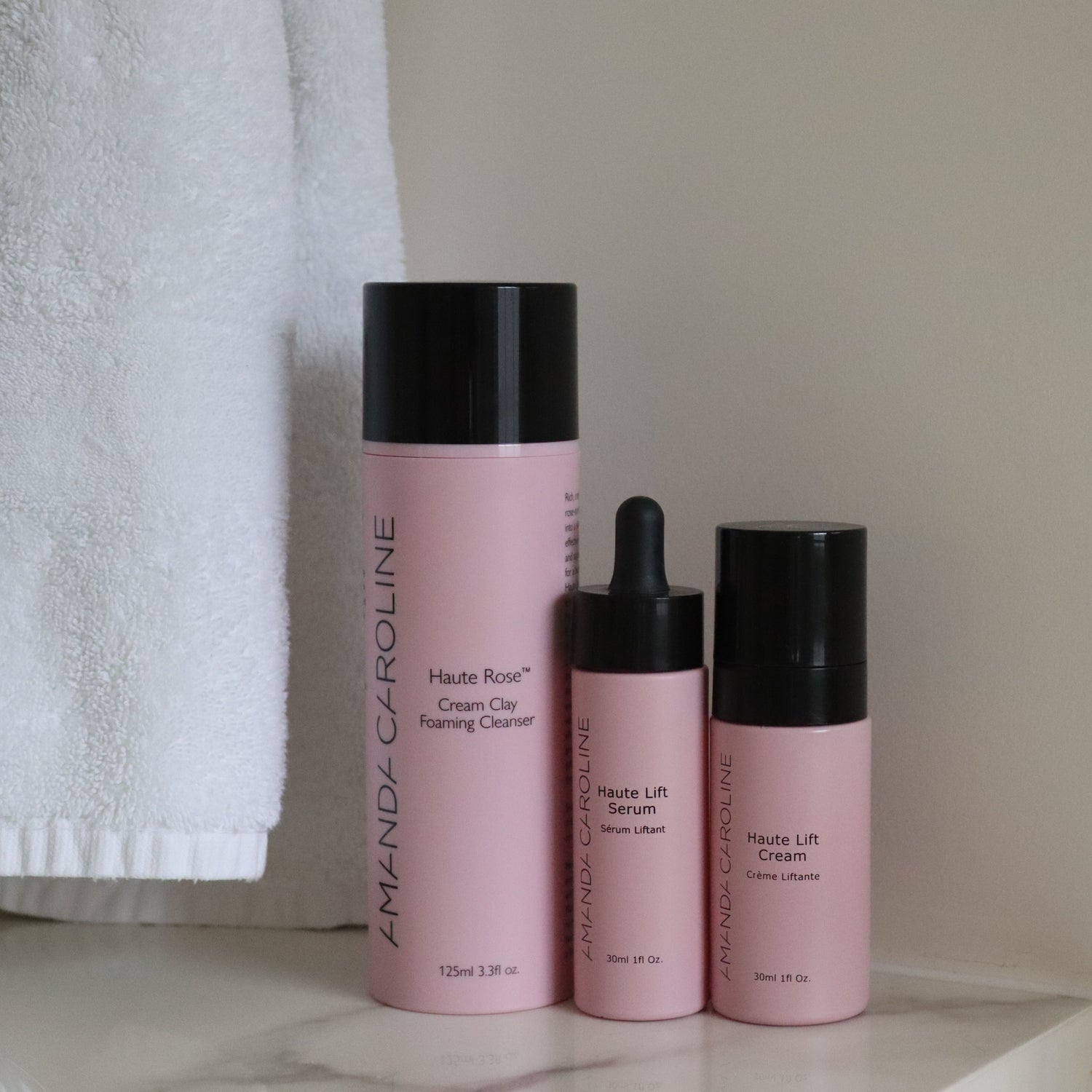 Introducing the ultimate skincare system, this skincare trio includes our Haute Rose Cream Clay Cleanser, Haute Lift™ Serum and Haute Lift™ Cream. Made to complement each other, these products provide deep hydration and brighten your complexion. Use our cream clay cleanser first to deeply cleanse and prep your skin, next apply the Haute Lift Serum to face, neck and décolleté to improve absorption of our seven powerful active ingredients. Finish by applying our Haute Lift Cream and enjoy a healthy and hydrated glow.